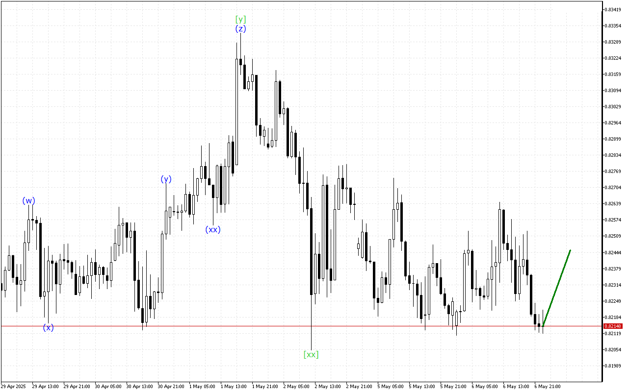 На уровне более мелкой волновой структуры отмечаем формирование тройной тройки. Сейчас цена находится в волне (z), которая завершает данную формацию. Ожидаем завершения этой волны в ближайшее время, после чего возможно изменение текущей ценовой тенденции.
