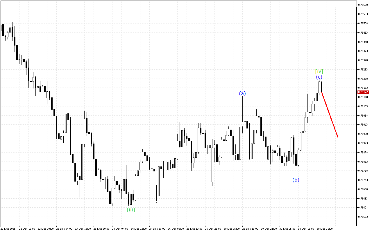 Среднесрочное движение указывает на развитие волновой структуры тройной тройки. В настоящее время сформирована волна [xx], после которой цена должна возобновить движение вниз.