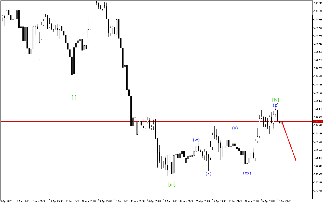 Текущая динамика движения указывает на формирование тройной тройки. На данный момент сформирована волна [xx], после чего ожидается начало развитие нисходящей волны [z].