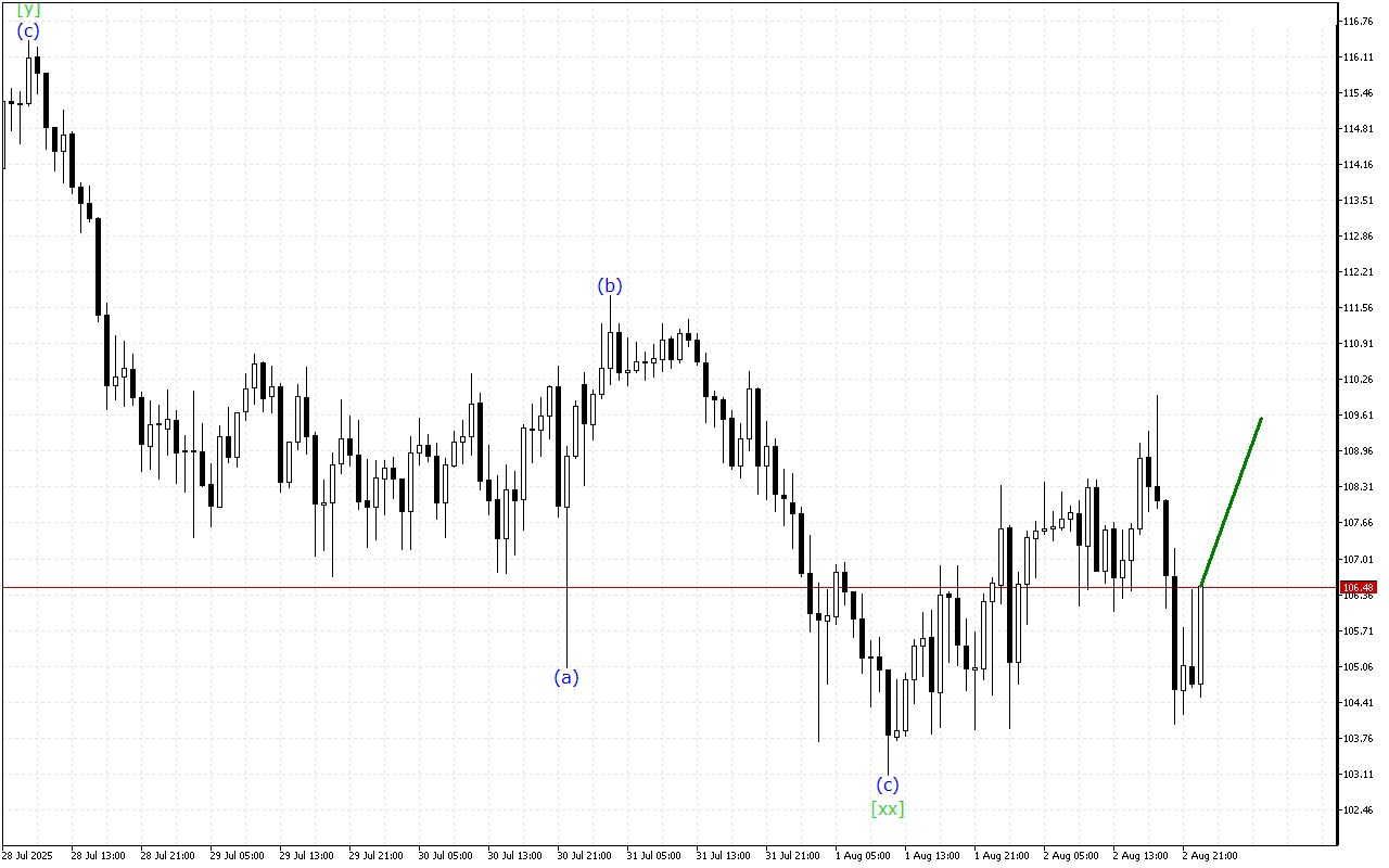 Среднесрочное движение указывает на развитие волновой структуры тройной тройки. В настоящее время сформирована волна [xx], после которой цена должна возобновить движение вниз.