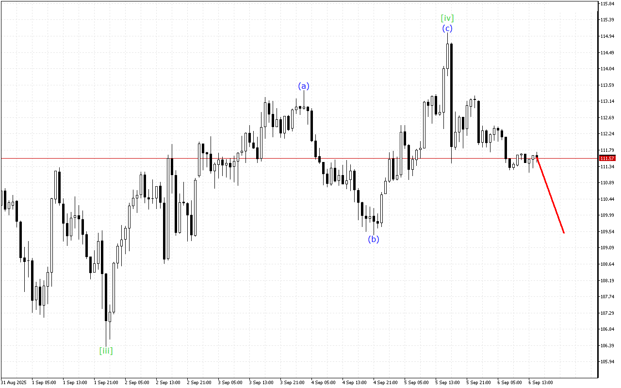 Таҳлили сохтори мавҷи дараҷаи олӣ як каҷро нишон медиҳад. Дар доираи ин ташаккули панҷмавҷӣ ташаккули мавҷ [iv] ба анҷом мерасад ва аз сар гирифтани ҳаракати поён дар дохили мавҷ [v] дар назар аст.