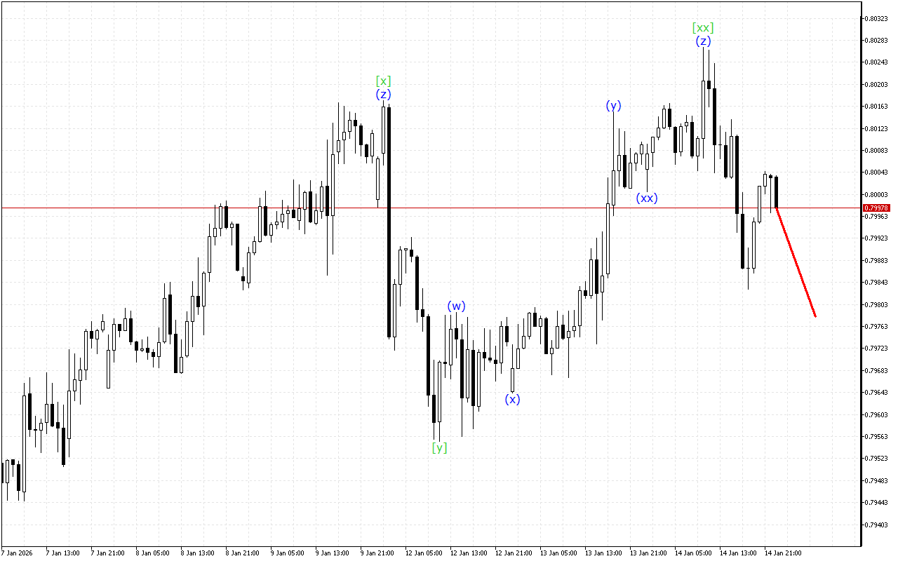 Дар сохтори мавҷи дараҷаи поёнтар, ташаккули се сегона қайд карда мешавад. Ҳоло нарх дар мавҷи (z) қарор дорад, ки ин ташаккулро анҷом медиҳад. Интизор меравад, ки ин мавҷ дар ояндаи наздик хотима ёбад. Пас аз он тамоюли кунунии нарх метавонад тағир ёбад.