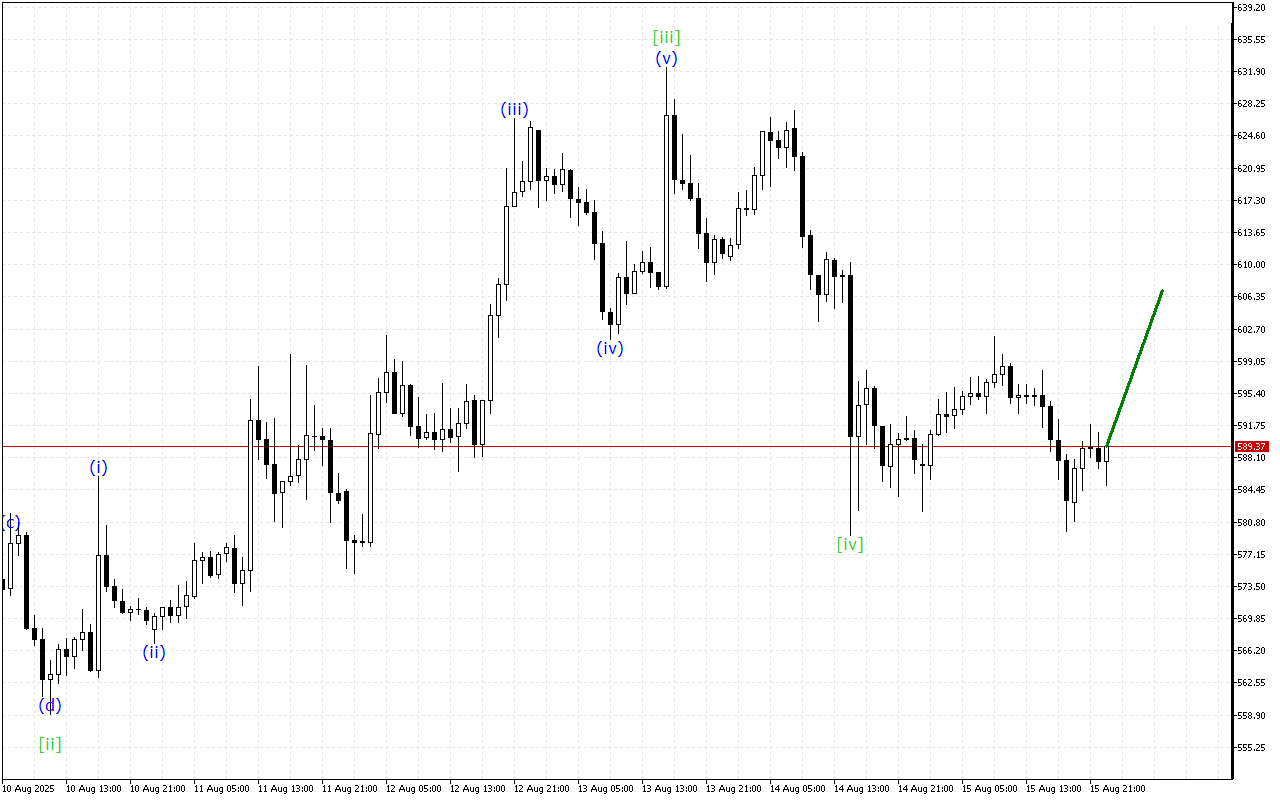 Мавҷҳои дараҷаи поёнӣ аз ташаккули зигзаги ABC ба поён шаҳодат медиҳанд. Мавҷ (в) бояд аллакай ба итмом расида бошад, бинобар ин ташаккули сохтори мавҷи навро интизор шудан мумкин аст.