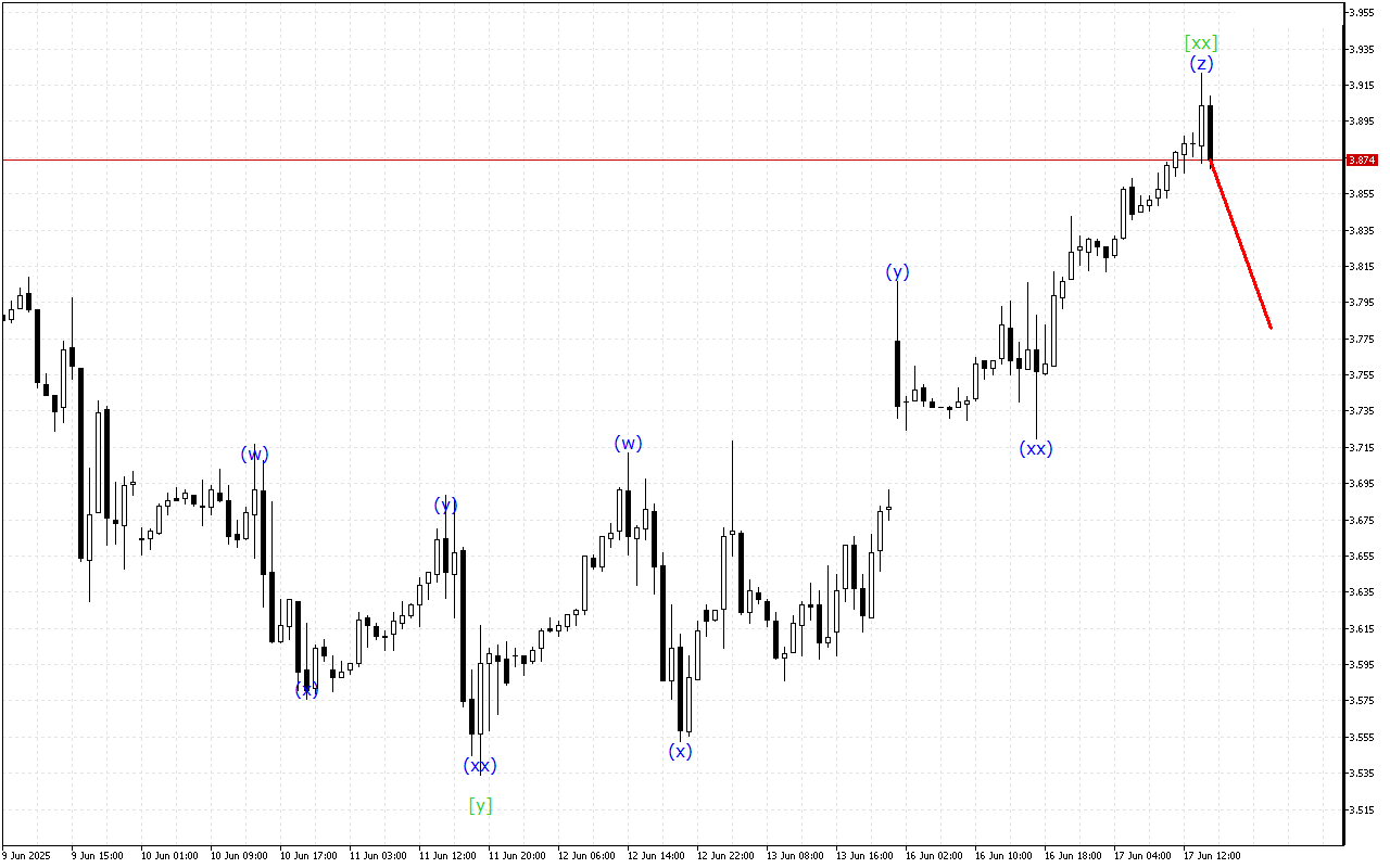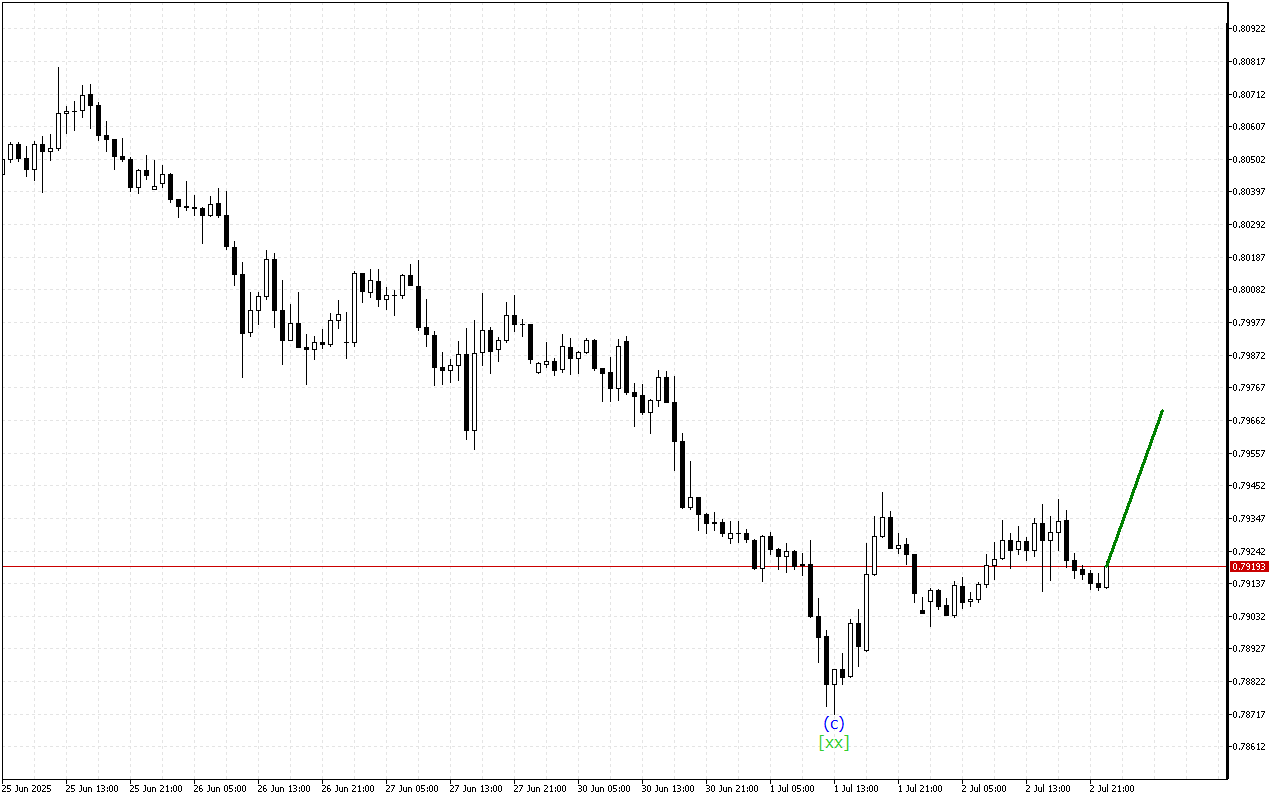 Мувофиқи сохтори мавҷи дараҷаи поёнтар, USDCHF ҳоло дар дохили зигзаги ABC ҳаракат мекунад. Дар ин ҳолат, нарх эҳтимолияти ташаккули мавҷро анҷом медиҳад (в).