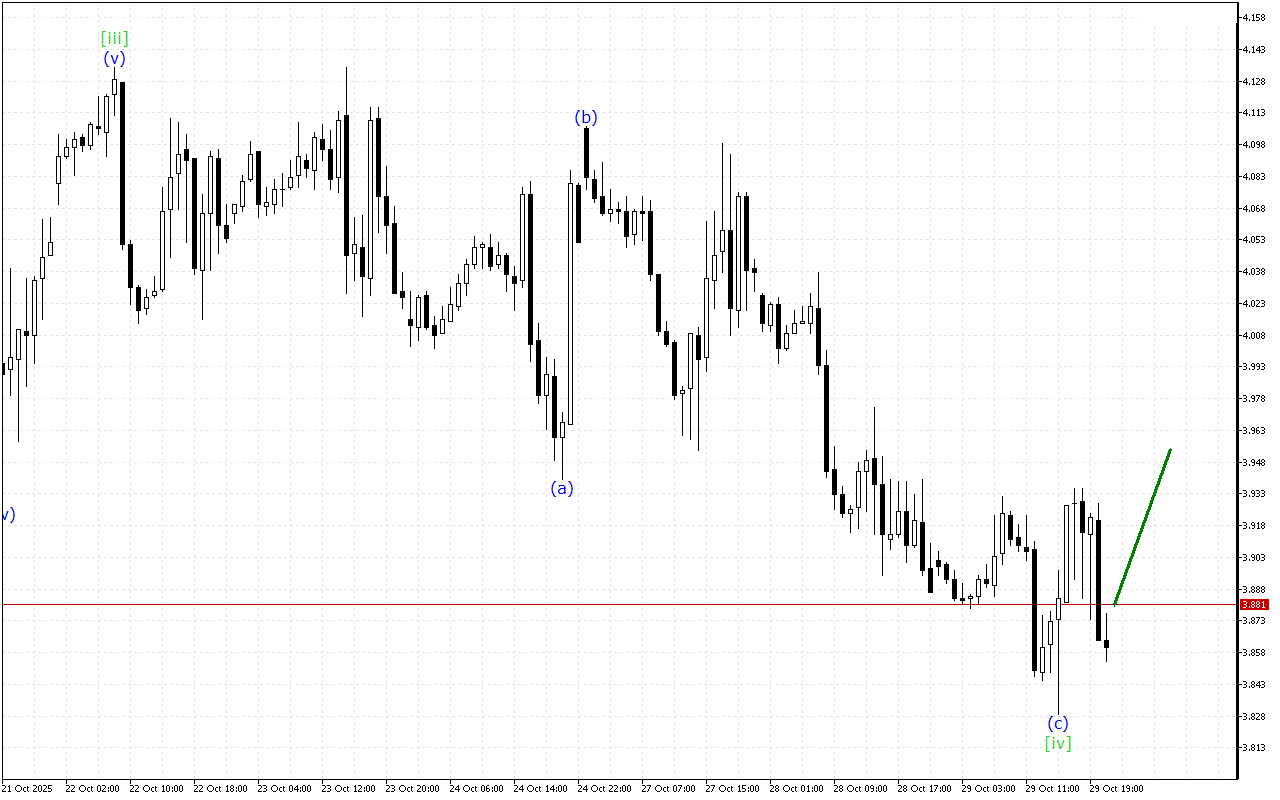 เวกเตอร์การเคลื่อนที่ในระยะกลางของ DAX 40 บ่งบอกถึงการก่อตัวของโครงสร้างคลื่นสามคลื่น ในขณะนี้ การก่อตัวของคลื่น [xx] เสร็จสมบูรณ์แล้ว และคาดว่าจะเริ่มมีการเคลื่อนที่ขึ้นภายในคลื่น [z]