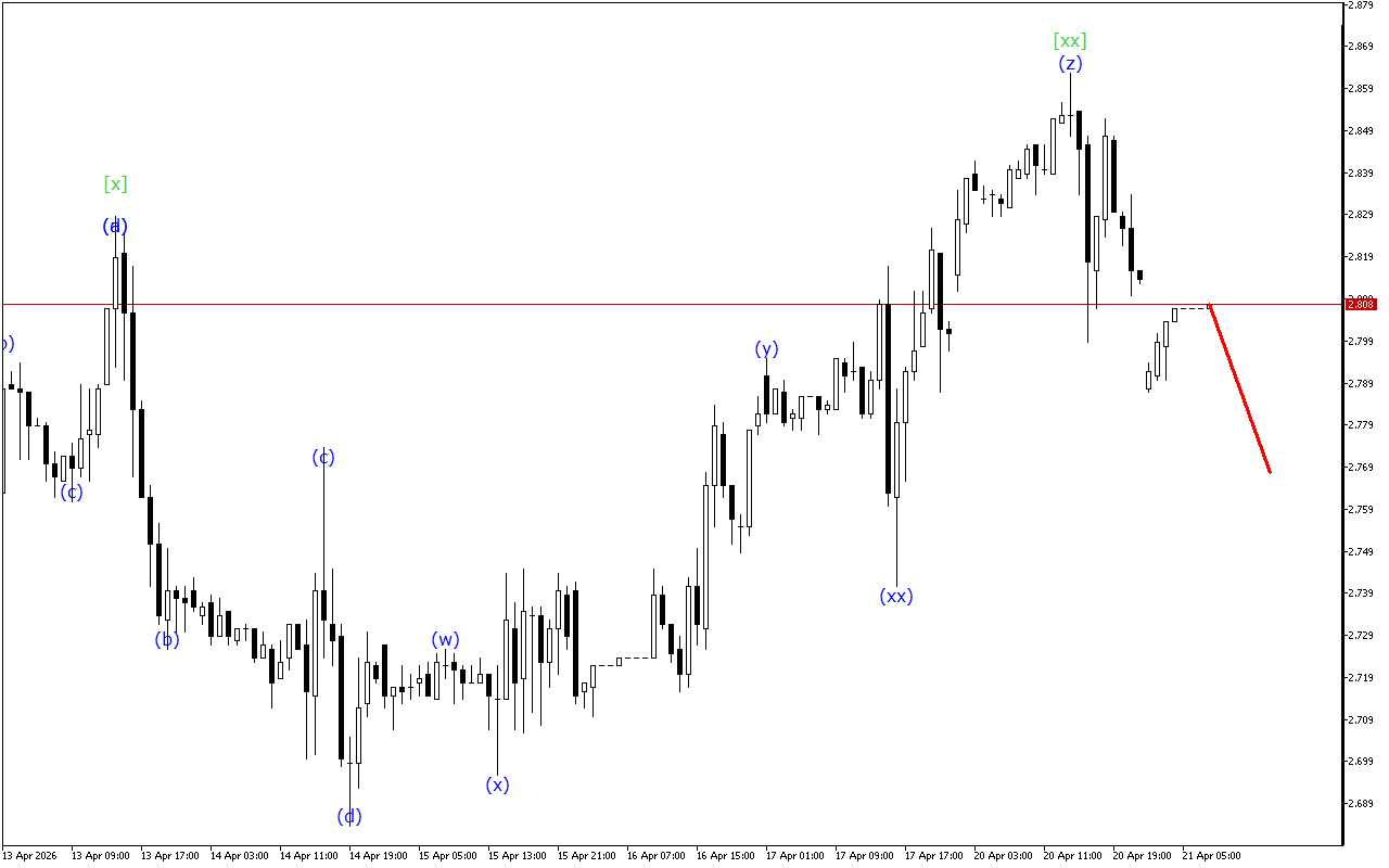 มีการพัฒนาโครงสร้างคลื่นสามลูกในช่วงเวลาที่สูงขึ้น ปัจจุบัน คลื่น [xx] ได้ก่อตัวขึ้นแล้ว หลังจากนั้น ราคาควรจะกลับมาเคลื่อนไหวขาลงอีกครั้ง