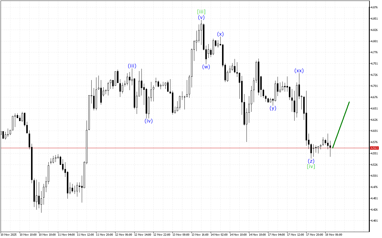 เนื่องจากการก่อตัวของการเคลื่อนไหวขาลงยังคงดำเนินต่อไปบนกราฟ อย่างไรก็ตาม โครงสร้างคลื่นเกือบจะก่อตัวขึ้น และราคาอาจเปลี่ยนทิศทางการเคลื่อนไหว