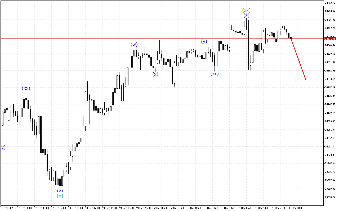 มีการพัฒนาโครงสร้างคลื่นสามลูกในช่วงเวลาที่สูงขึ้น ปัจจุบัน คลื่น [xx] ได้ก่อตัวขึ้นแล้ว หลังจากนั้น ราคาควรจะกลับมาเคลื่อนไหวขาลงอีกครั้ง
