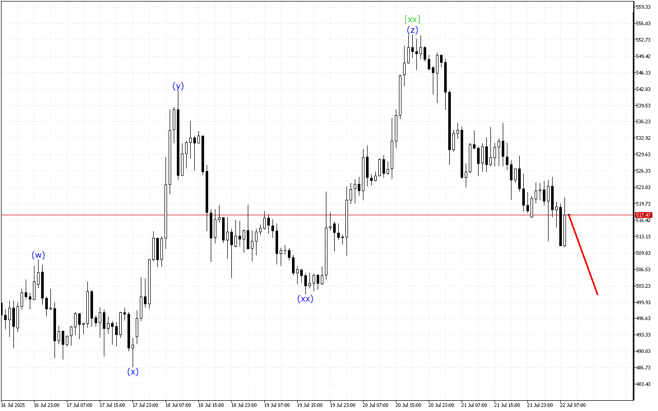 ภายในโครงสร้างคลื่นระดับล่าง จะสังเกตเห็นการพัฒนาของคลื่นสามตัว การก่อตัวของคลื่น (z) กำลังเสร็จสมบูรณ์ในโครงสร้างนี้ เมื่อพิจารณาจากพื้นหลังนี้ คาดว่าจะมีการแก้ไขเสร็จสมบูรณ์และเริ่มมีการเคลื่อนไหวที่มีทิศทางมากขึ้น