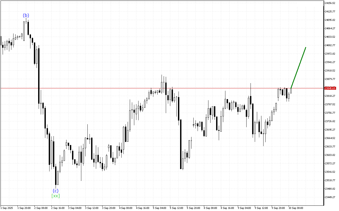 หากพิจารณาจากช่วงเวลาที่สั้นลง ตลาดจะเคลื่อนไหวภายในซิกแซก ABC ในปัจจุบัน ราคาอาจกำลังสร้างคลื่น (c) เสร็จสมบูรณ์ และการเคลื่อนไหวของราคาอาจเคลื่อนตัวเข้าสู่การสร้างคลื่นลูกใหม่