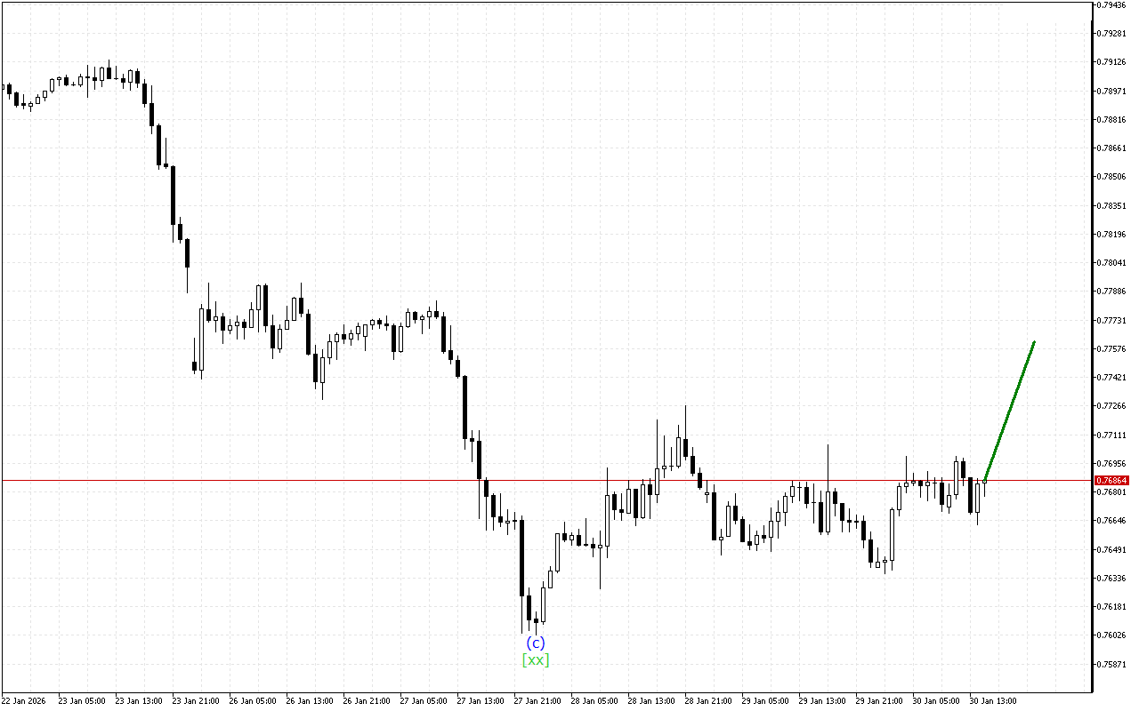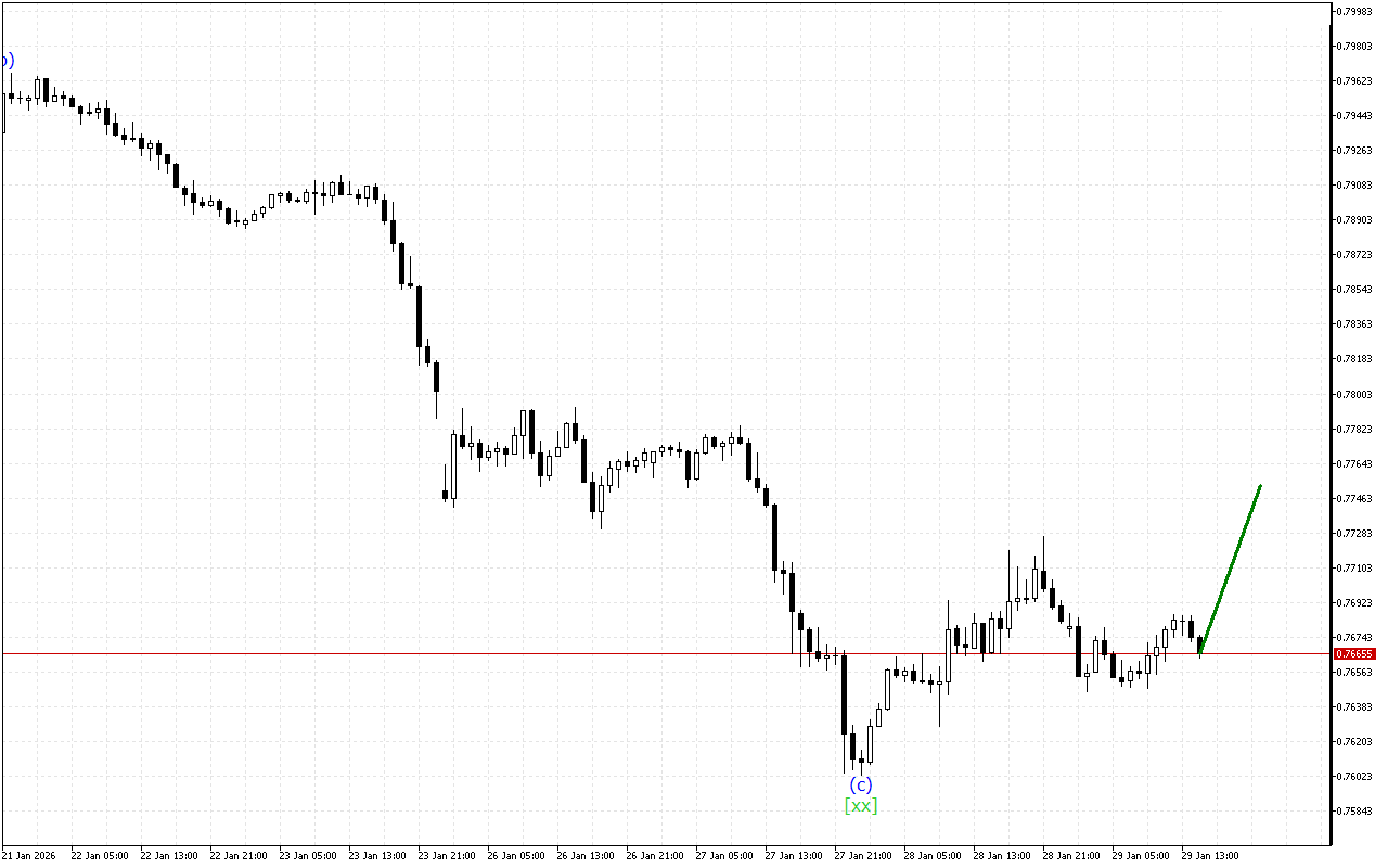 Хвилі нижнього таймфрейму утворюють потрійну трійку. Зараз ціна знаходиться у хвилі (z). Коли ця хвиля завершиться, очікується більш спрямований рух ціни.