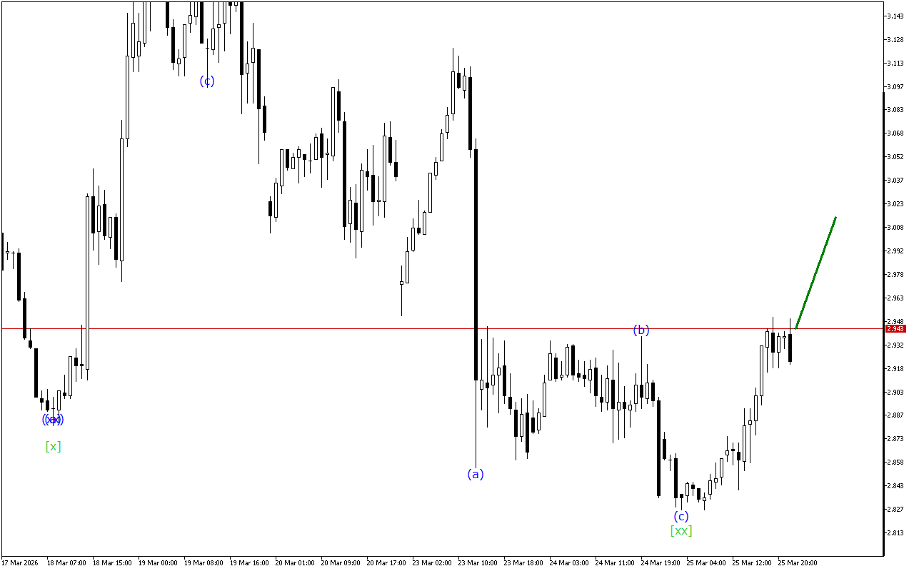 Сучасна динаміка руху свідчить про формування потрійної трійки. На даний момент сформована хвиля [xx]. Після його формування очікується розвиток спадної хвилі [z].