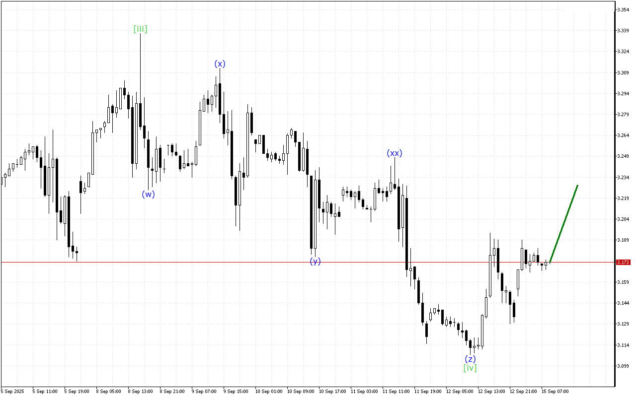 Сучасна динаміка руху свідчить про формування потрійної трійки. На даний момент сформована хвиля [xx]. Після його формування очікується розвиток спадної хвилі [z].