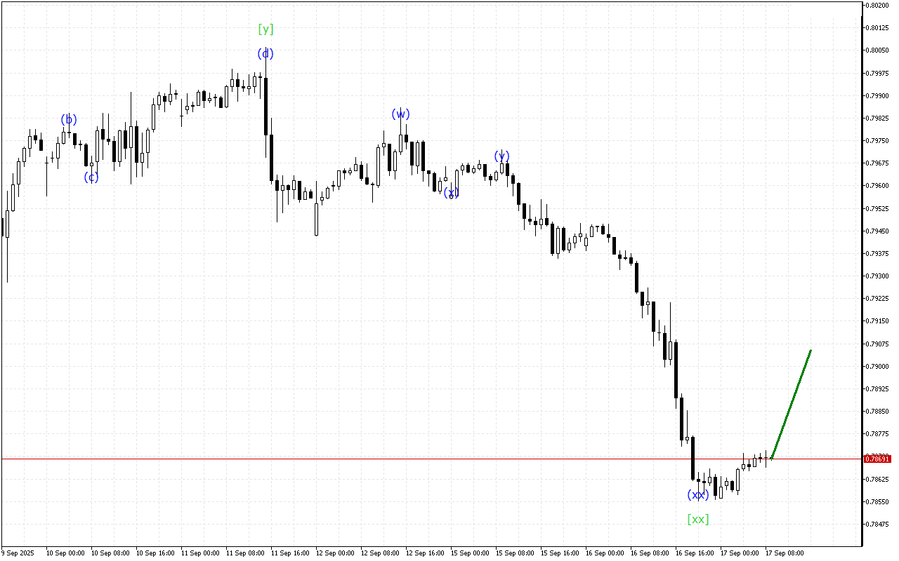 Існує розвиток потрійної трихвильової структури на більш високому таймфрейме. Наразі сформована хвиля [xx]. Після цього ціна повинна відновити рух вниз.