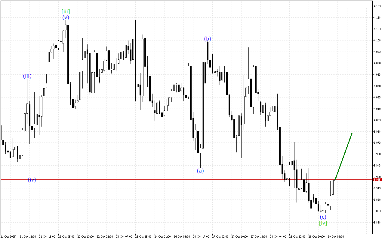У хвильовій структурі нижчого ступеня спостерігається розвиток потрійної трійки. У цій структурі завершується формування хвилі (z). На цьому тлі очікується завершення корекції і початок більш спрямованого руху.