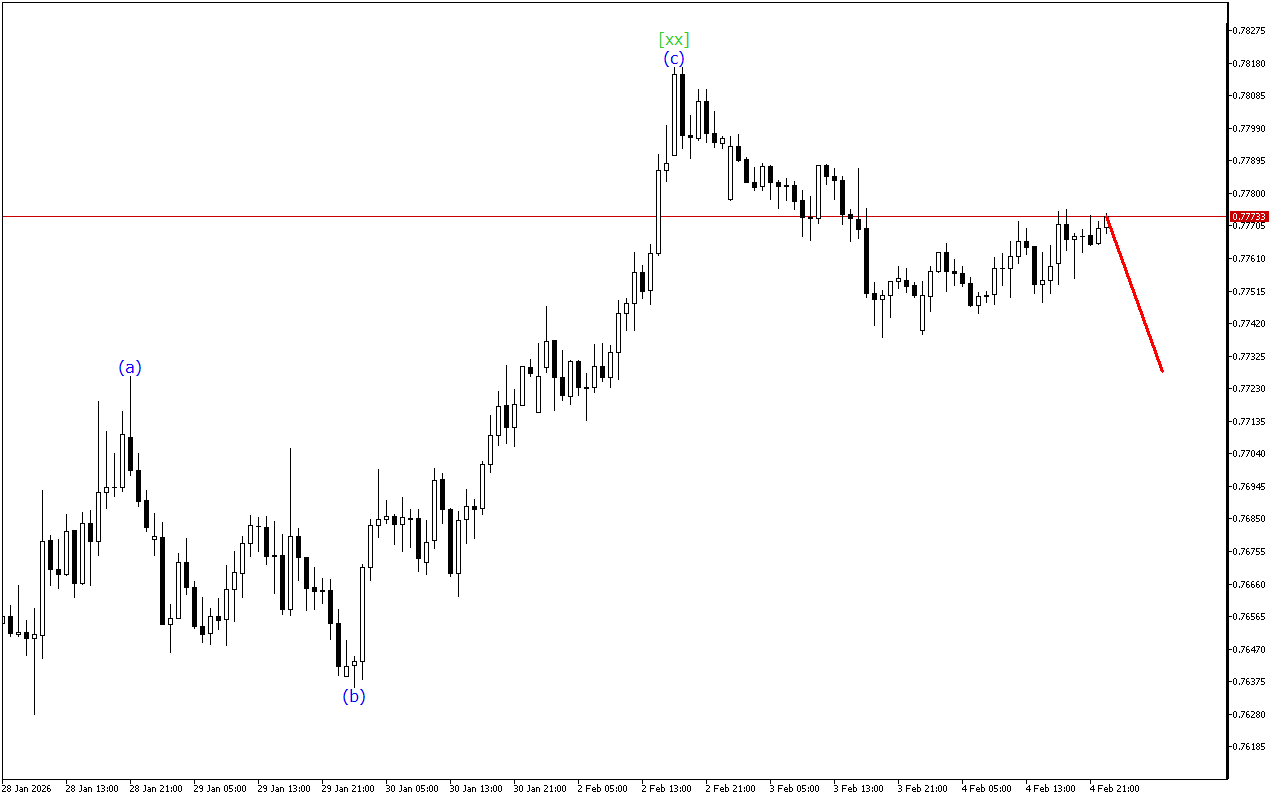 При хвильовій структурі нижчого ступеня відзначається утворення потрійної трійки. Зараз ціна знаходиться в хвилі (z), яка завершує це формування. Очікується, що найближчим часом ця хвиля закінчиться. Після цього поточна цінова тенденція може змінитися.