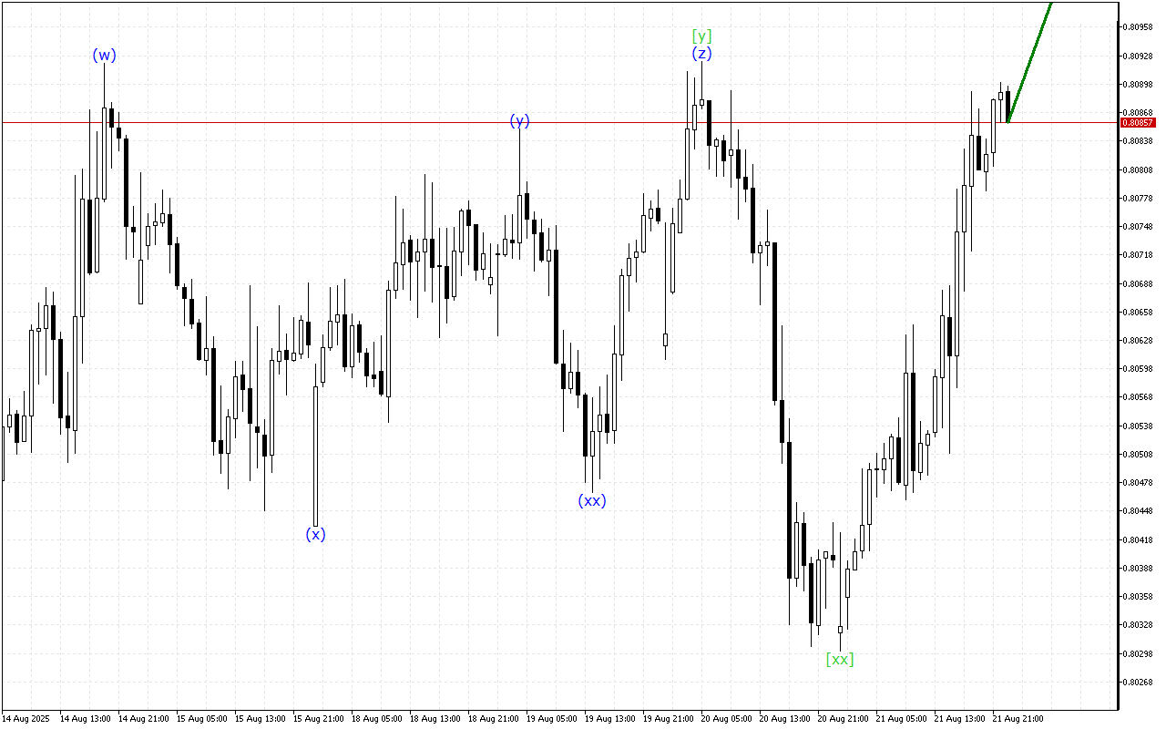 USDCHF H1: Хвильовий аналіз для азіатської сесії 22.8.2025