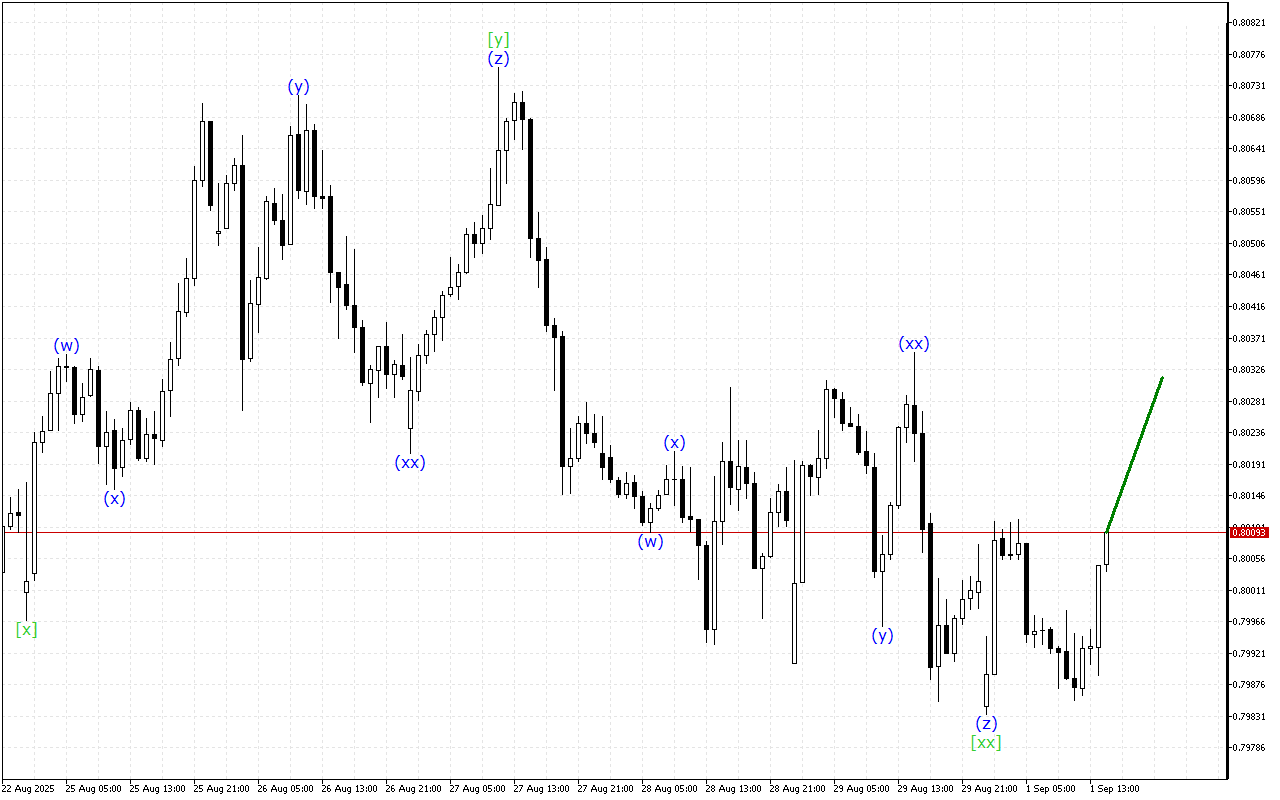 USDCHF H1: Хвильовий аналіз для американської сесії 1.9.2025