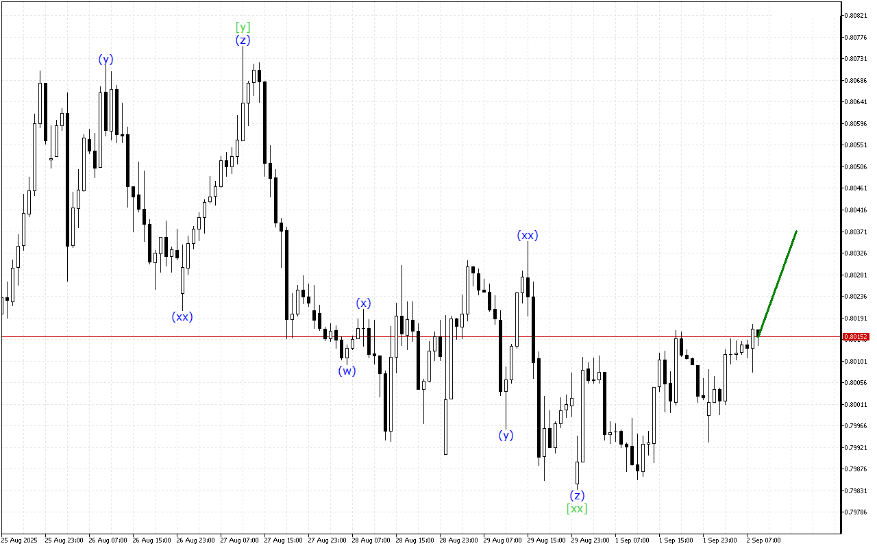 USDCHF H1: Хвильовий аналіз для Європейської сесії 2.9.2025
