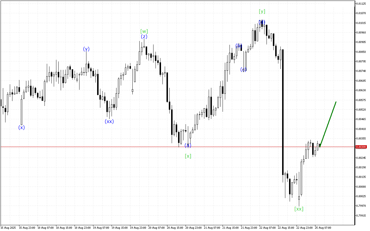 USDCHF H1: Хвильовий аналіз для Європейської сесії 25.8.2025