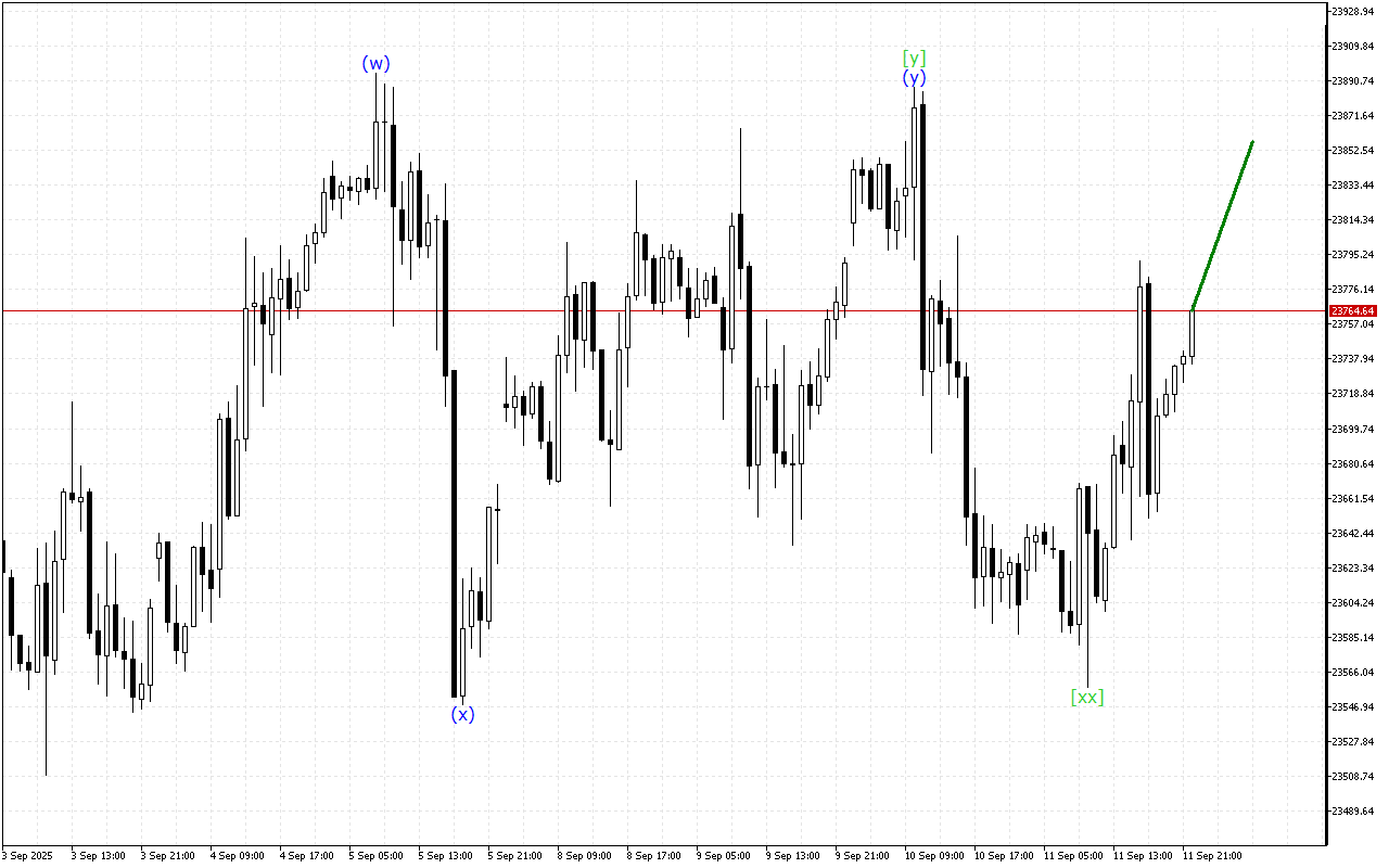 За меншим часовим масштабом ринок рухається в межах зигзага ABC. Зараз ціна, ймовірно, завершує формування хвилі (c), і рух ціни може перейти до формування нової хвилі.
