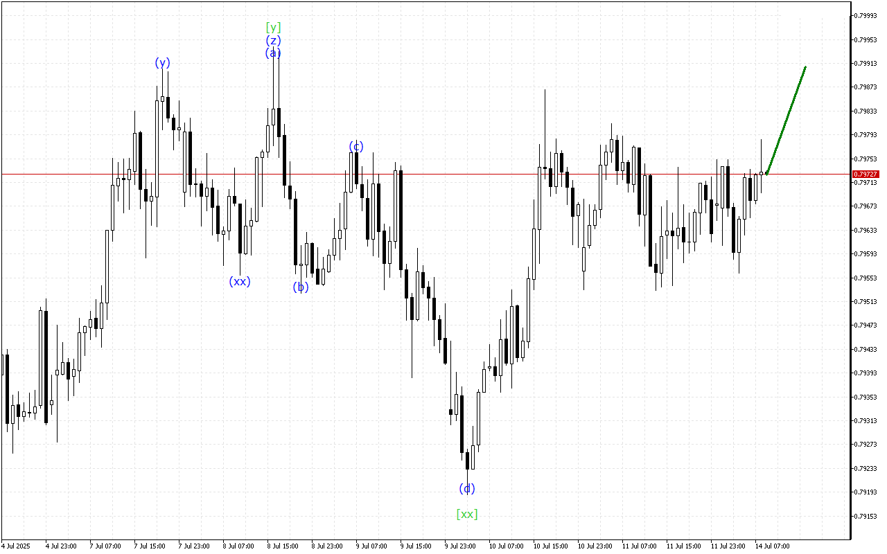 하위 차수 파동 구조의 맥락에서 ABC 지그재그의 형성이 명확하게 보입니다. 파동(c)이 완전히 형성되면 추세 움직임이 재개되는 것을 관찰할 수 있습니다.