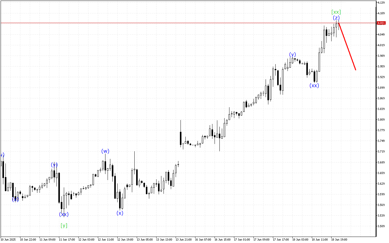 상위 파동 구조의 분석은 하강 쐐기 모양을 보여줍니다. 이 5파 형성 내에서 파동 [iv]의 형성이 완료되고 파동 [v] 내에서 하향 운동이 재개될 것으로 예상됩니다.