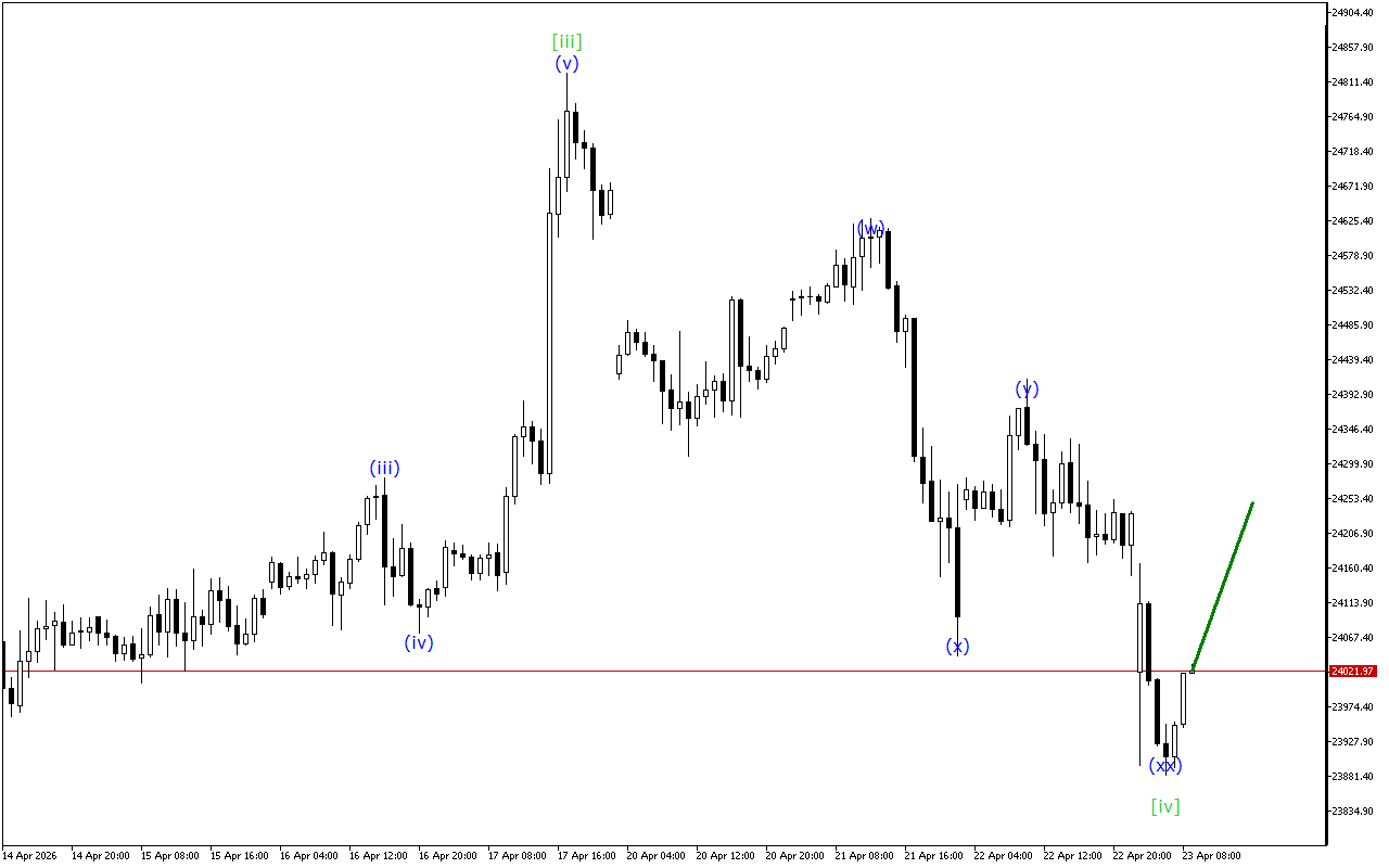 Shunday qilib, DAX 40 chartida yuqoriga qarab harakat shakllanishda davom etmoqda, ammo bu impuls shakllanishning yakuniy bosqichida, shuning uchun narx pastga qarab harakatlanishini davom ettirishi mumkin.