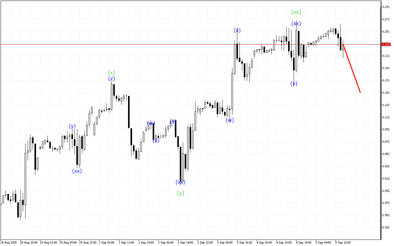 DAX 40 Triple Three to’lqin tuzilishi ichida harakat qilishda davom etmoqda. Endi, aftidan, diagrammada to’lqinning [xx] shakllanishi yakunlandi va to’lqin [z] bilan yuqoriga qarab harakatning rivojlanishini kutish mumkin.