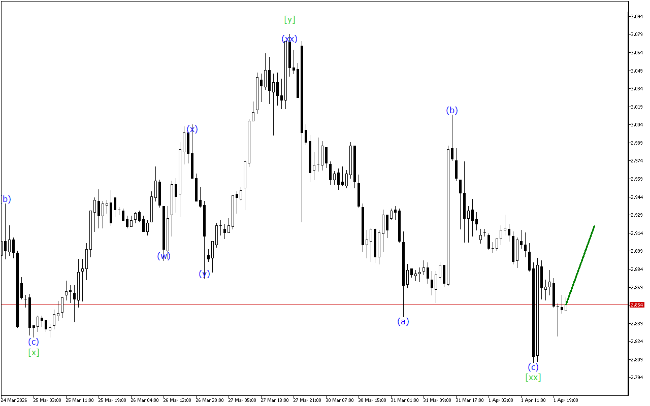 Natural Gas ning o’rta muddatli harakat vektori Triple Three to’lqin strukturasining shakllanishini ko’rsatadi. Endi to’lqinning [xx] shakllanishi tugallandi va to’lqin [z] ichida yuqoriga qarab harakat boshlanishi kutilmoqda.