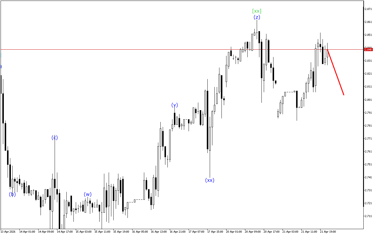 Pastki darajadagi to’lqin tuzilishida uchlik uchlikning shakllanishi qayd etiladi. Endi narx bu shakllanishni yakunlovchi to’lqin (z) da. Bu to‘lqin yaqin orada tugashi kutilmoqda. Shundan so’ng joriy narx tendentsiyasi o’zgarishi mumkin.