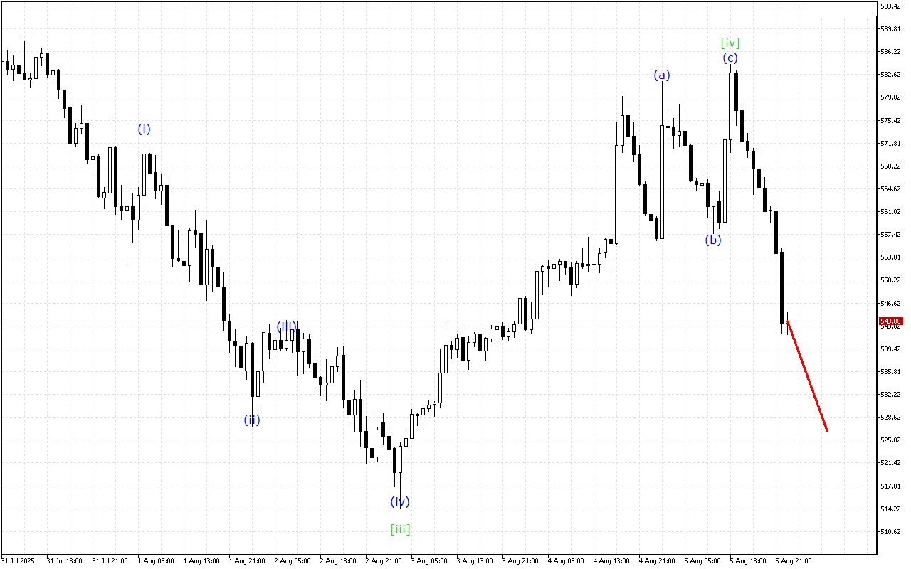 Yuqori vaqt oralig’ida uchta uch to’lqinli strukturaning rivojlanishi mavjud. Hozirgi vaqtda [xx] to’lqini shakllangan. Shundan so’ng narx o’zining pastga harakatini davom ettirishi kerak.
