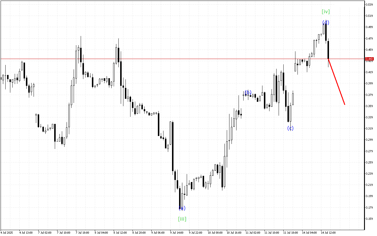 Kichikroq vaqt oralig’iga ko’ra, bozor ABC zigzag ichida harakat qiladi. Hozirgi vaqtda narx (c) to’lqinining shakllanishini yakunlamoqda va narx harakati yangi to’lqin shakllanishiga o’tishi mumkin.
